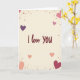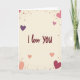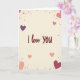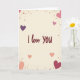 This greeting card centers on the words “I love you” in deep maroon, placed right in the middle so your message is the first thing they see. The lettering has a gentle, flowing look, with smooth curves that feel romantic without being over the top. The background is a soft, creamy beige that keeps everything calm and easy on the eyes. Around the edges, small hearts are scattered like confetti in light lavender, blush pink, and deeper rose tones. A speckled border in warm russet dots runs along the outer edge and gives the card a cozy, textured feel. Overall, it looks sweet, calm, and affectionate—perfect for a close partner or someone you care about 💘❤️.