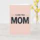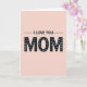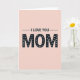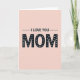 Designed with a soft blush pink background, this card sets a gentle, affectionate tone right away ❤️. The layout stays simple and open, letting the message feel like a close, caring note shared between two people. Across the lower half, “MOM” sits large in dark charcoal, using thick, modern lettering that feels steady and reassuring. Each letter is dotted with small, bright white polka dots, adding a light, friendly rhythm like little kisses across the page. Above it, “I LOVE YOU” appears in slimmer black text, centered and spaced neatly so it reads like a quiet promise. Thin horizontal lines bracket the upper phrase on both sides, giving the top area a balanced, tidy frame. The contrast of pink, black, and white keeps the look calm and sweet, with a touch of 🌼. The white dots are evenly scattered across all three letters, standing out crisply against the dark charcoal shapes.