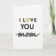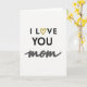 This card shows the words “I LOVE YOU Mom” centered on a plain white background. “I LOVE YOU” is written in large, all-caps black letters with a simple, modern look. In the word “LOVE,” the “O” is replaced by a small gold heart outline that draws your eye right away ❤️. Just below, “Mom” appears in a softer charcoal gray cursive style, like a gentle signature. The mix of strong black text, the warm gold heart, and the quieter gray “Mom” makes the message feel both confident and tender. It’s a meaningful choice when you want to say thank you and show deep affection without needing a lot of extra details 🥰. Share it to help pass along Valentine’s Day feelings in a simple, loving way.