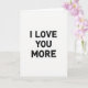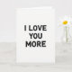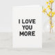 This greeting card keeps things simple and focused on one loving message. On a plain white background, the words “I LOVE YOU MORE” appear in all caps and are stacked on three lines down the center. The letters are deep black and stand out strongly against the white space. Each letter has a rough, worn texture, like it was stamped with ink and didn’t fill in perfectly. There are no characters or extra objects, so your eyes go straight to the message and what it means ❤️. The layout feels calm and direct, making it a great fit for romance or a close friendship 💘. It’s an easy card to give when you want your feelings to be clear without adding anything extra.