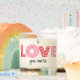 I love you more typograraphy candle in pink and red makes a great Valentine's Day, anniversary, engagement or wedding gift.