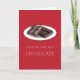 Original illustration by Becky Nimoy; "I love you more than chocolate" Valentine's Day Greeting Card. Perfect for the chocoholic chocolate addict's loved one. In red with blue accent. Inside blank or "customize it" to add your own custom text.