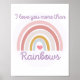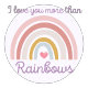 I love you more than rainbows cute quote text. A lovely print perfect for a nursery or child's room or even for your valentine. I opted for a sweet font and soft colors with pastel shades of purple, lavender, rose, and pinks to show that more comfortable and tender side of love that is felt for people who are special to you in many ways. Rainbows are typically seen as a sign of hope, and indication that there is good after the bad and hope is something we should hold dear. This is why I opted for the topic of rainbows.