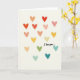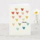 This greeting card shows twenty-one heart shapes scattered across a pale cream background, like they’re gently drifting in the air. The hearts have slightly uneven, cut-out edges, which gives them a soft, human touch. Their colors are light and muted, including coral, peach, several shades of pink, yellow, green, teal, and a deeper turquoise. The background looks lightly textured, and the lighting is soft, so the colors stand out without harsh shadows. Near the center, the card says “I love you...” in a thin, handwritten-style line, and the words sit among the floating hearts. The mix of heart sizes and their loose spacing makes the layout feel relaxed but still put together. It’s a sweet, simple way to show love or close friendship on Valentine’s Day 💘❤️. Hope it helps you share your Valentine’s Day sentiments with someone special.