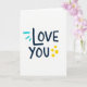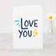 This card features the big message “I LOVE YOU” in a loose, brush-style lettering that looks like dark navy ink. The words sit centered on a wide white background, with “I” above and “LOVE YOU” taking up most of the space. To the left of the word “LOVE,” three short teal dashes point outward like little sparks, adding a burst of energy. On the lower right, just under “YOU,” five golden-yellow dots of different sizes float like confetti. The simple mix of navy, teal, and yellow on white keeps your eyes on the message and makes it feel direct and honest ❤️. It’s a meaningful card to give because it says what you feel without overexplaining, whether it’s for a partner or someone you care about 🥰. Share it to help express your Valentine’s Day feelings in a warm, straightforward way.