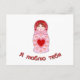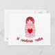 A Russian Nesting Doll, Matryoshka, with hearts and the words "I Love You" in Russian letters