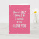 This card has a bright fuchsia background that feels like a big, warm hug. In the center, the message is stacked in several lines: “There’s ONLY 1 thing 2 do 3 words 4 you I LOVE YOU.” The letters are white, rounded, and easy to read, with a soft gray shadow that makes them stand out. The numbers 1, 2, 3, and 4 are mixed right into the lines, giving the message a sweet little build-up before the final “I LOVE YOU.” Around the words, tiny white dots, small crosses, and simple four-point stars are scattered like light confetti. The whole look is cheerful and direct, making it a meaningful way to say what you feel without overthinking it 🥰❤️. It’s a lovely choice for sharing Valentine’s Day sentiments with someone you care about.