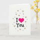 This card shows a simple white background with the words “I ❤️ You” placed in the center. The “I” and “You” are in plain black letters, easy to read, with a bright hot pink heart standing in for the word “love.” Around the main line, several smaller hearts are scattered like confetti, giving the design a sweet, romantic feel 💘. Some of these small hearts are just black outlines, and others have a black outline with a warm yellow fill. The mix of pink, black, and yellow keeps the card lively while still feeling calm and clear. There’s no other scene or characters—just the message and the floating hearts, like a little shower of affection ❤️.