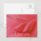 I Love You postcard with pink rose petals. Simple and to the point; let them know how you feel. Perfect for Valentines day