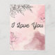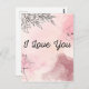 Send heartfelt messages with our "I Love You" Postcard, adorned with a delicate watercolor background in blush and other pink tones, embellished with charming flower sketches. With "I love you" elegantly written across the center, this postcard is perfect for expressing your affection to someone special. Whether it's for a romantic gesture, a thoughtful note to a friend, or a sweet reminder to a family member, this postcard captures the beauty of love in its simplest form. Share your sentiments with grace and charm using our "I Love You" Postcard, a timeless token of affection.