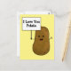 Send someone a message with this sweet I Love You, Potato postcard. A cute brown cartoon potato with little black eyes and a big happy smile. He is holding a sign which reads I Love You Potato, this is a template and can be used to change the font style, colour and size. Or even change the words to your own message.