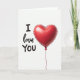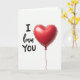 This greeting card shows a shiny red heart balloon floating on a plain white background, with soft creases and bright reflections that make it look real. The balloon sits a little to the right, and a thin dark red string hangs down from it. To the left, the words “I love YOU” are printed in black, with the “I” in a simple upright letter and “love YOU” in a looser, handwritten-style look. The mix of the heart balloon and the clear message feels direct, like saying what you mean without overthinking it ❤️. It’s a sweet choice for a partner or a close friend when you want your feelings to be easy to read and hard to miss. The open background keeps everything focused on the heart and the words, so the message lands right away 🥰. Share it to pass along warm Valentine’s Day feelings and let someone know they’re loved.