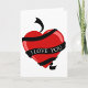 Nothing says valentines more than red hearts and especially red hearts with an I love you message on them. These I love you red hearts are stunning. The red heart has a black ribbon going around it that has the I love you message written on it. This design looks great on these greeting cards