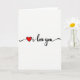 This greeting card focuses on a heartfelt message that stands out right away. The background is bright white, giving the design plenty of open space and keeping all attention on the words. Centered on the card, the phrase “i love you” is written in smooth black lettering with gentle curves that feel like natural handwriting. A small red heart takes the place of the dot above the lowercase “i,” adding a bold touch of color and warmth. With no extra images or distractions, the message feels honest and personal. It’s a thoughtful choice for a partner or someone special, and a lovely way to share your feelings on Valentine’s Day.