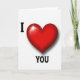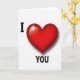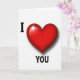 This card shows a large red heart in the center, shaded to look shiny and slightly 3D. A bright white sparkle sits on the upper-left part of the heart, like a light is reflecting off it. The background is plain white, which makes the heart stand out right away. To the left of the heart, there’s a black “I,” and below the heart, the word “YOU” appears in black, all in simple, thick letters. Together, the layout reads as “I love you,” with the heart taking the place of the word “love.” A faint shadow under the heart adds a little depth without distracting from the message. It feels direct, sweet, and easy to understand, making it great for romance or close friendship 💘❤️.