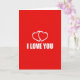 This Valentine's Day card uses a rich red background that instantly sets a romantic mood ❤️. In the center, two white heart outlines overlap and link together, like two people holding close. The hearts are simple and smooth, and the way they cross makes the connection feel real and steady. Near the bottom, the words “I LOVE YOU” appear in white, all-capital letters with a plain, easy-to-read letter style. The text sits neatly under the hearts, so your eyes go from the symbol to the message without effort. With only red and white, it feels direct and honest, which can be comforting when you’re trying to say something big. It’s a meaningful card to give when you want your feelings to be clear, whether it’s for a partner or someone you deeply care about 🥰.