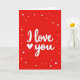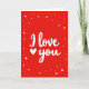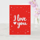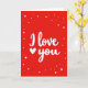 This Valentine’s Day card features a rich red background with the words “I love you” centered in bright white lettering. The text has smooth, flowing strokes that feel warm and heartfelt, standing out clearly against the bold red color. In the word “love,” the letter “o” is replaced with a small white heart, adding a sweet detail that draws your eye. Along the edges of the card, tiny white stars and dots form a light border, like soft confetti floating around the message. The strong contrast keeps the focus on the words while the small details add charm. It’s a romantic, comforting design that works beautifully for a partner, close friend, or anyone you want to remind how much they mean to you on Valentine’s Day or any time you want to say it with love.