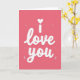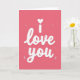 This card shows the words “I love you” in flowing white lettering centered on a soft coral-pink background. The letters look smooth and slightly raised, with a faint shadow that gives them a bit of depth. A small white heart replaces the dot over the “i,” adding a sweet detail that feels intimate ❤️. Tiny white outline stars are scattered lightly around the message, like little sparkles in the background. Near the bottom, gentle leaf-like curls in white sit around the word “you,” giving the design a soft, romantic finish. A dotted white line runs near the top and bottom edges to frame everything without taking attention away from the words. It feels meaningful because it keeps the focus on a simple message you might say out loud, but in a way that’s easy to hold onto 🥰. Hope it helps you share your Valentine’s Day sentiments.