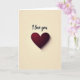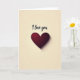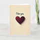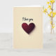 This greeting card centers on a single heart in deep burgundy, shaded from darker edges to a softer middle. The heart sits right in the middle and has a faint shadow underneath, so it looks slightly raised from the page. The background is a creamy beige that keeps the focus on the heart and the message. Above the heart, the words “I love you” appear in black, written in smooth, flowing cursive near the top center. The simple layout feels quiet and sincere, like you’re saying something important without needing a lot of extra detail. It’s a meaningful card to give because it puts the feeling front and center, making your love or care easy to understand ❤️. 🥰.