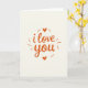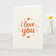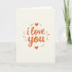 This card centers on the simple words “i love you” in a flowing, hand-lettered style. The lettering is a soft orange, set against a creamy off-white background that feels calm and intimate. Two small solid orange hearts add a sweet touch—one sits above the word “love,” and another rests below the word “you.” Short curved dash marks arc outward around the words, like little rays that hint at excitement and closeness. The message sits right in the middle, so your eyes land on it right away and the meaning is clear. Giving this card feels meaningful because it says what you feel without needing anything extra, which can be especially touching for a partner or a close friend 🥰. The simple colors and open space keep the focus on love and care, making it easy for someone to feel seen ❤️. Hope it helps you share your Valentine’s Day sentiments.