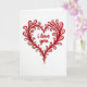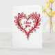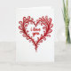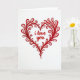This greeting card shows a large red heart made from curling, vine-like shapes and small leaf details. The heart sits in the middle of a plain white background, so the red design stands out right away. The red lines twist and loop like a floral pattern, giving the heart a soft, romantic look. In the center, the text reads “i love you” in smooth, flowing red lettering. The words sit neatly inside the heart and feel calm and sincere. There are no other objects or characters, just the heart and the message, which keeps the focus on love and closeness 💘❤️.