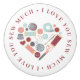 "I Love You Sew Much" red text surrounds a heart shaped sewing theme of threads, scissor, bobbins, needles and pins, measuring tapes, and buttons. A perfect addition to your craft room or sewing desk cabinets!