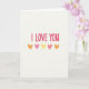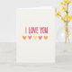 This card features the simple words “I LOVE YOU” centered near the top in fuchsia letters that look loosely hand-drawn, with rounded edges that feel gentle. The background is an off-white shade, so the message stands out without anything else competing with it. Just below the text, there’s a row of five small hearts lined up in a straight line. The hearts alternate colors—orange, pink, yellow, pink, and orange—creating a sweet, balanced pattern. The shapes are smooth and easy to read, giving the whole front a calm, friendly look. It feels meaningful because it says exactly what you want to say, without needing extra details, and the hearts add a little warmth ❤️. It works for romance or close friendship, especially when you want to keep things honest and straightforward 🥰. Hope it helps you share your Valentine’s Day feelings in a kind, simple way.