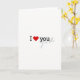 This greeting card centers on the simple message “I ❤️ you” on a plain white background. The “I” and the final “you” are printed in black with clear, classic letter shapes that are easy to read. In the middle, a bright red heart icon stands in for the word “love,” and it pulls your attention right away ❤️. Just beneath the black “you,” there’s a second, lighter “you” in soft gray that looks like a faint echo. That subtle repeat makes the message feel deeper, like you’re saying it out loud and also holding it close in your thoughts. With so much open white space, the few elements on the front feel calm and sincere rather than busy. It’s a meaningful card to give when you want your feelings to come through clearly, whether for a partner or someone you care about