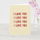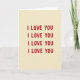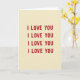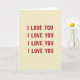 This greeting card is simple and heartfelt, with the words “I LOVE YOU” repeated four times across the front. The text is set in strong block-style letters, all in uppercase, and each line is evenly spaced to fill the card. The letters are a deep red, and they stand out clearly against a warm beige background that looks a bit like textured paper. There are no characters or objects, just the message taking center stage, which makes it feel direct and sincere. The repeated lines create a steady, comforting rhythm, like saying the same loving words again and again without getting tired of them. Overall, it feels romantic and steady, perfect for a partner or someone you care about ❤️💌.