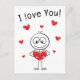 Express your heartfelt affection with this adorable 'I Love You!' stick figure design. Featuring a charming doodle character holding a big red heart, surrounded by smaller hearts, this simple message is perfect for conveying love to that special someone. Its sweet, hand-drawn style adds a touch of warmth, making it ideal for Valentine's Day, anniversaries, or just to brighten someone's day with a loving thought.