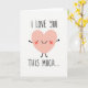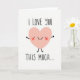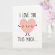 This greeting card shows a cute pink heart character on an off-white background, keeping the focus on love and closeness. The heart has small black eyes and a big curved smile that makes it look happy and a little excited. Two round cheeks in a warm reddish-orange color add a shy, blushing look ❤️. Thin black arms stretch out wide, as if the heart is showing how much it cares with a big hug. Above the heart, the text reads “i LOVE YOU” in uneven, hand-drawn black letters, with “LOVE” in all caps. Below the heart, it says “THIS MUCH…” in the same black hand-drawn style, with the dots making it feel like the message keeps going 💘. It’s a simple, sweet design that feels like a warm note you can give to someone you care about, so you can share your Valentine’s Day feelings 😘.