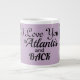 Displays the complete set of The Atlantis Grail 4-book Series covers and the beloved quote "I Love You to Atlantis and back," spoken by Margot Lark to her daughter Gwen. Fill your heart with warmth every time you drink your morning coffee, tea, or lvikao in this jumbo mug, inspired by The Atlantis Grail Series of books by Vera Nazarian.
