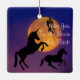 Full Harvest Moon with Unicorns and fairies against a purple sky