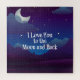 I love you to the moon and back, blue-indigo landscape with white crescent moon,