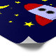 This sweet nursery wall art poster features a rocket ship ready to head to the moon, along with the wording "I love you to the moon and back" in a white casual font on a navy blue background. This is perfect for decorating a baby's or child's bedroom. It would also make a great baby shower gift.