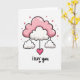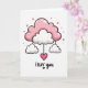 This Valentine's Day card shows a candy-pink cloud at the top, outlined in black with shiny highlights that make it look soft and sweet. Hanging from it like a little mobile are three small white clouds and a bright pink heart, all dangling on thin lines. The background is white with scattered pink dots, which adds a light, floaty feeling to the scene. Each white cloud has a touch of light gray shading underneath, giving it a gentle sense of depth. Near the bottom, the card says “i luv you” in a simple, handwritten-style look, with a tiny heart right under the words. The message feels direct and honest, like something you’d say when you really care 🥰. It works for romance or close friendship, because it’s small and sweet without trying too hard ❤️.