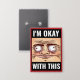 Pin it, wear it, and let everyone know you're totally holding it together (barely). This button features a frazzled cartoon face and the deadpan phrase **“I’M OKAY WITH THIS”** on a bold darker red background—perfect for backpacks, jackets, lanyards, or emotional spirals.