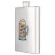 The product is a good size and came exactly as it was pictured. The lid is not attached to the flask, which could be dangerous on drunken nights... The print came out surprisingly well and looks very sharp. Would definitely recommend.