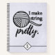 Show your love for yarn and all things knitting + crochet with this "I Make String Pretty" typography design custom initial high-quality notebook. Perfect for jotting down your knitting + crochet patterns and notes!