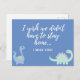 A postcard that tells loved ones that you miss them with the help of some cute dinosaurs!