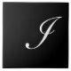 I Monogram Initial White on Black Ceramic Tile