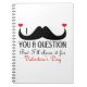 Fun black mustache with red hearts and text I mustache (must ask) you a question But I'll shave it for Valentine's day. You can customize white notebook color.