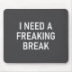 I Need A Freaking Break, Funny, Jokes, Sarcastic S Mouse Pad