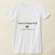 My overall review is that the T-shirt is nice, it fits true to size however the font is significantly smaller than advertised and you can't read it. The printing is unreadable and there is a strain to read it. It does not look like the advertised product. Maybe the shirt color is darker or a larger more visible font should have been used. Photos with and without flash and font is barely legible.
