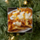 Funny food pun Christmas holiday ornament. Realistic photo of cheese fries and funny quote, "I only have fries for you."