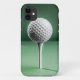 I Phone case with a white golf ball on a white tee set on a green background.
