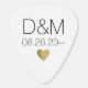 front side: the words I PICK YOU with love heart in a modern design concept; back: his and her initials and wedding date. An awesome wedding favor idea for stylish music lovers