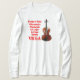 The viola is a string instrument somewhat like the violin. It's an orchestra instrument and is played with a bow. The words on this shirt all relate to the viola.
