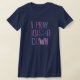 The material is a great quality that is hard to find with most tee shirts. Fabric was not see-through or thin at all, but was also very soft and comfortable. The shirt description states that it runs a little small, so I sized up one size for a perfect fit! I would definitely buy this type of tee shirt again because I love the fit and high quality fabric that I cannot find anywhere else. The printing was perfect and just as pictured. Loved the cute quote and really enjoy the tee in both the quality and design. I love quirky typography designs and funny quotes and I am extremely pleased with the overall quality and value I get at Zazzle!