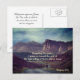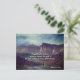 Inspirational quote custom postcard depicts a girl jogging, surrounded by amazing mountains and the beauty of nature and features Bible Verse Philippians 3:14, Forgetting the past... I press on toward the goal of the high calling of God in Christ Jesus. The back greeting can be modified or deleted for a blank card.-